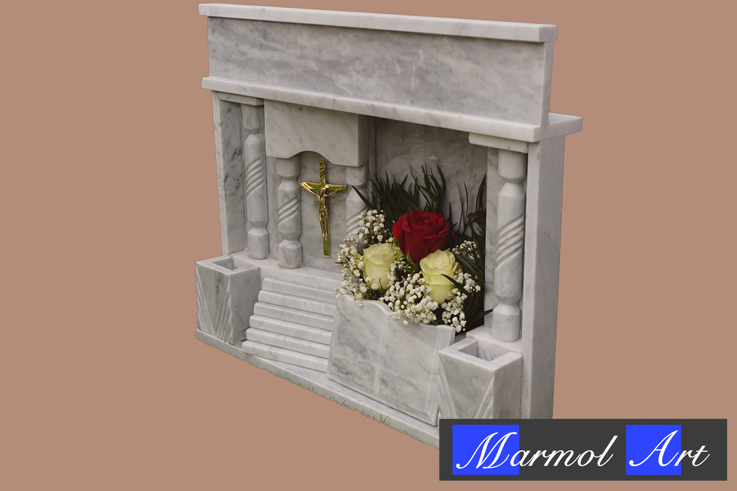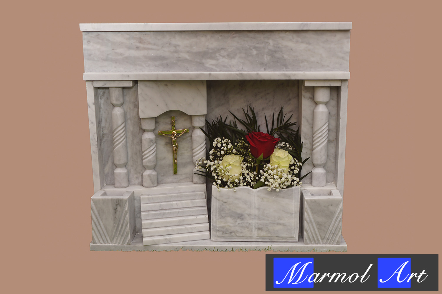 Lápida Jardinera Columnas Mármol Blanco con Cruz de Bronce 17 cm